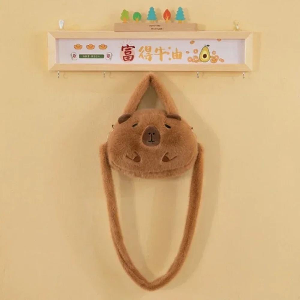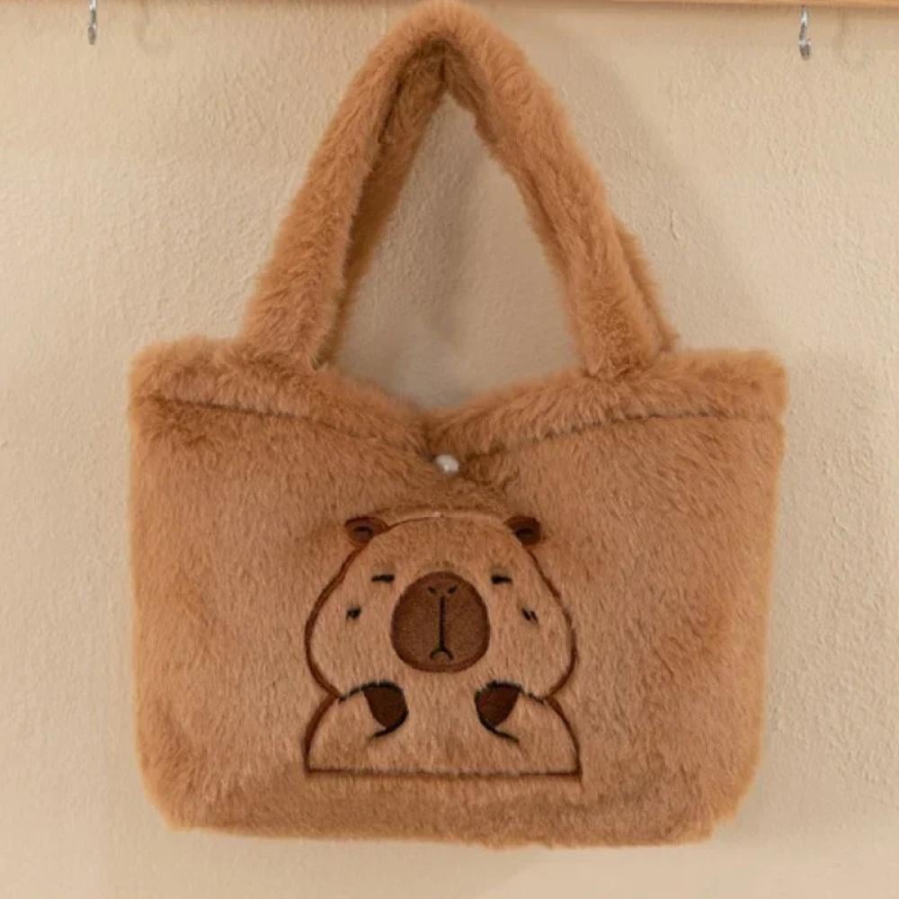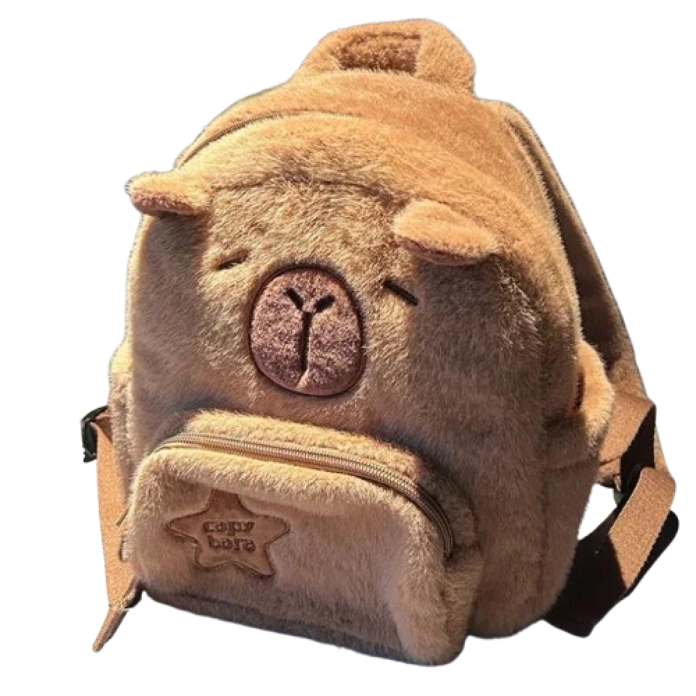 حقيبة اطفال مدرسية من الفراء الناعم بتصميم كابيبالا مميز سعة كبيرة لحمل الكتب والأدوات مريحة وعملية للمدرسة والرحلات اليومية